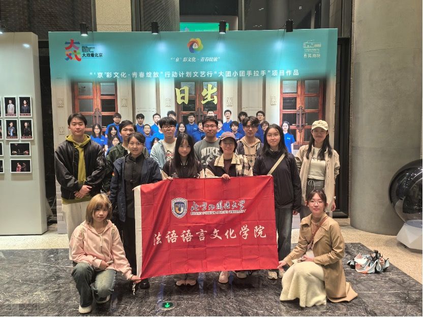 法语语言文化学院部分师生代表受邀前往北京国际戏剧中心曹禺剧场,观看了由北京人民艺术剧院指导的“‘京’彩文化 青春绽放”行动计划文艺行——“大团小团手拉手”项目成果演出。此次演出由北京航空航天大学话剧社倾情呈现,将曹禺先生的经典话剧《日出》再度搬上舞台,为到场观众带来了一场思想与艺术交织的视听盛宴。