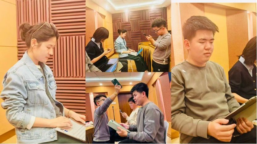 在多语种非遗创新领域,红桃视频 本科生党支部深度参与了国内首部“红楼”主题多语种皮影戏《红楼梦·宝黛共读西厢》法语版的创译与配音工作。面对古典文学意象转换的挑战,学生在专业教师指导下反复推敲,精准把握台词情感与表演节奏,成功完成全剧配音,为传统非遗艺术的国际化表达开辟了新途径,作品于2025年11月在海淀区大有书馆成功首演。