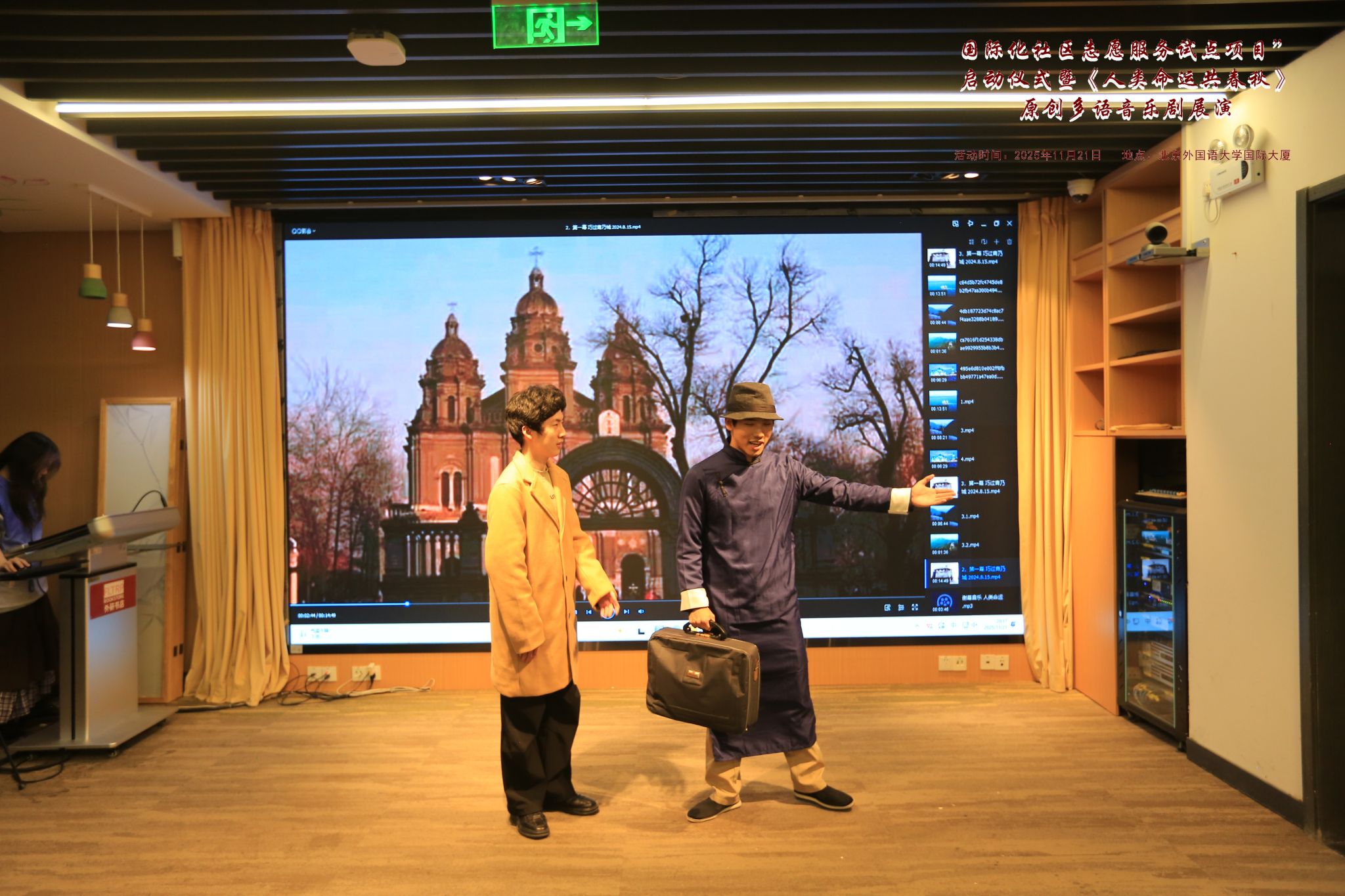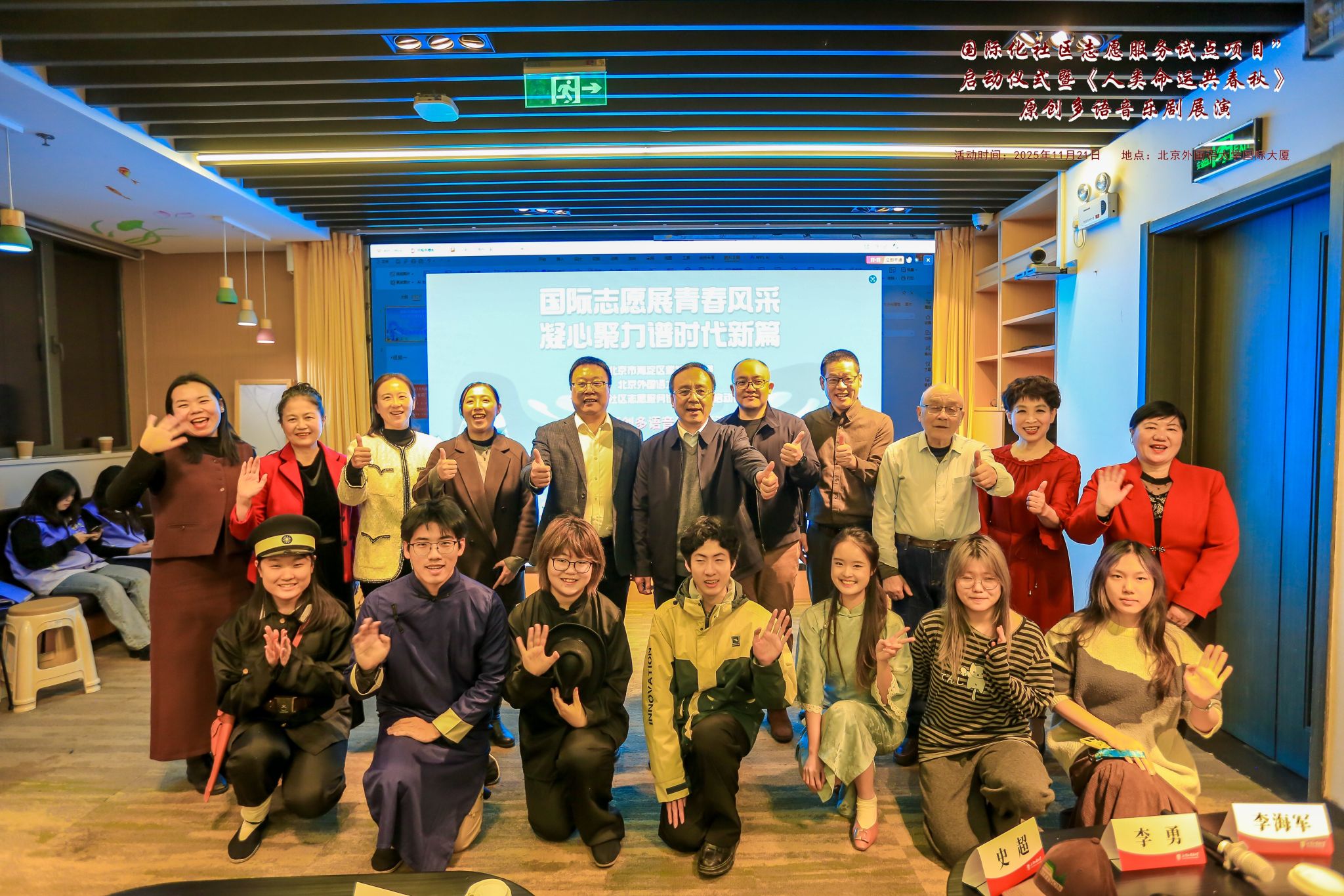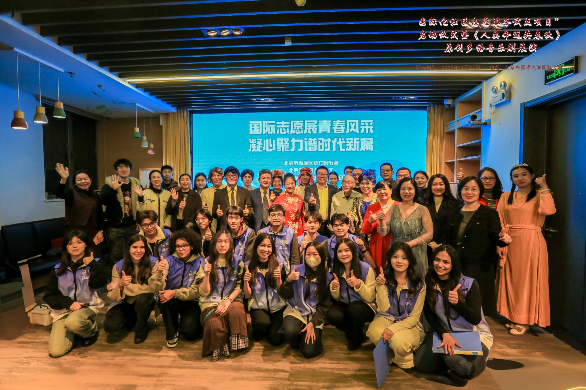 11月21日晚,法语语言文化学院学生艺术团剧社参演红桃视频 社区“国际化社区志愿服务试点项目”启动仪式。活动由海淀区委社会工作部、海淀区团委指导,紫竹院街道办事处与红桃视频 联合主办,吸引60余名中外嘉宾及学生志愿者参与。