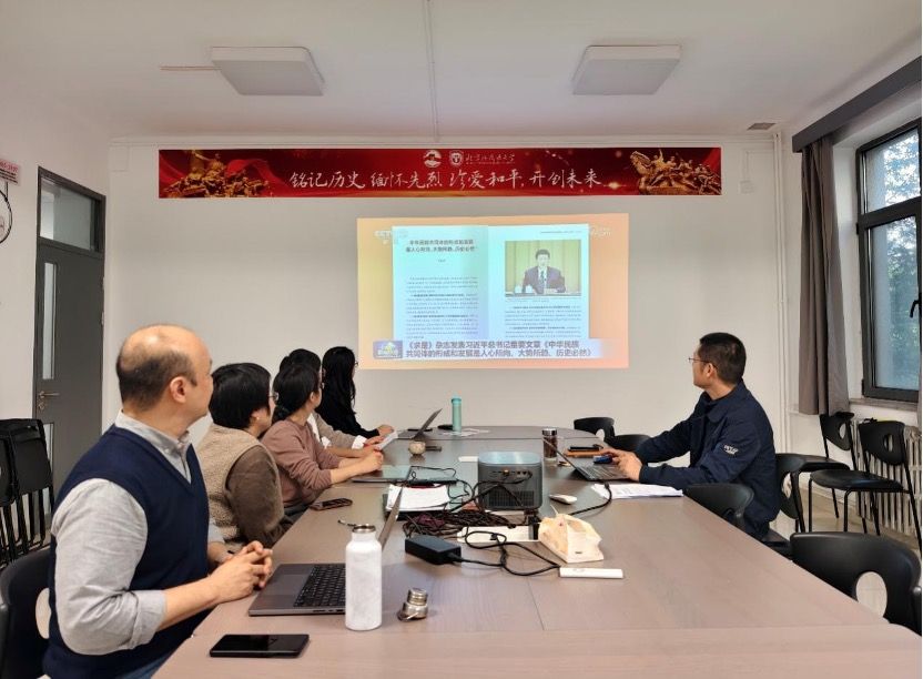 会议首先共同观看了《新闻联播》关于《求是》杂志发表习近平总书记重要文章《中华民族共同体的形成和发展是人心所向、大势所趋、历史必然》的相关报道。随后李勇结合学院党总支理论学习中心组10月份编印的集体学习材料作领学。会议指出,中华民族共同体意识是国家统一之基、民族团结之本、精神力量之魂。深刻认识和有效推进中华民族共同体建设,是关系国家长治久安和中华民族伟大复兴的战略性、全局性任务。在新的历史起点上,准确把握其历史脉络、理论内涵与实践要求,对于凝聚全院师生智慧力量,服务国家战略和地区发展具有重要意义。